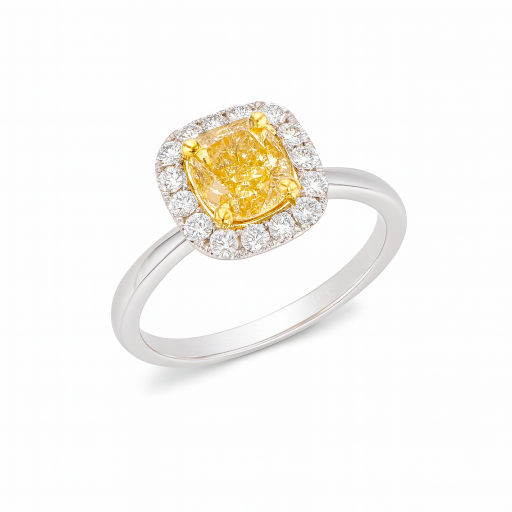 A Sunlit Sparkle: Cushion Cut Yellow Diamond Ring