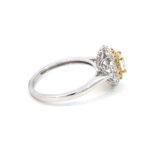 Fancy Yellow Cushion diamond ring with the center stone of 0.65ct