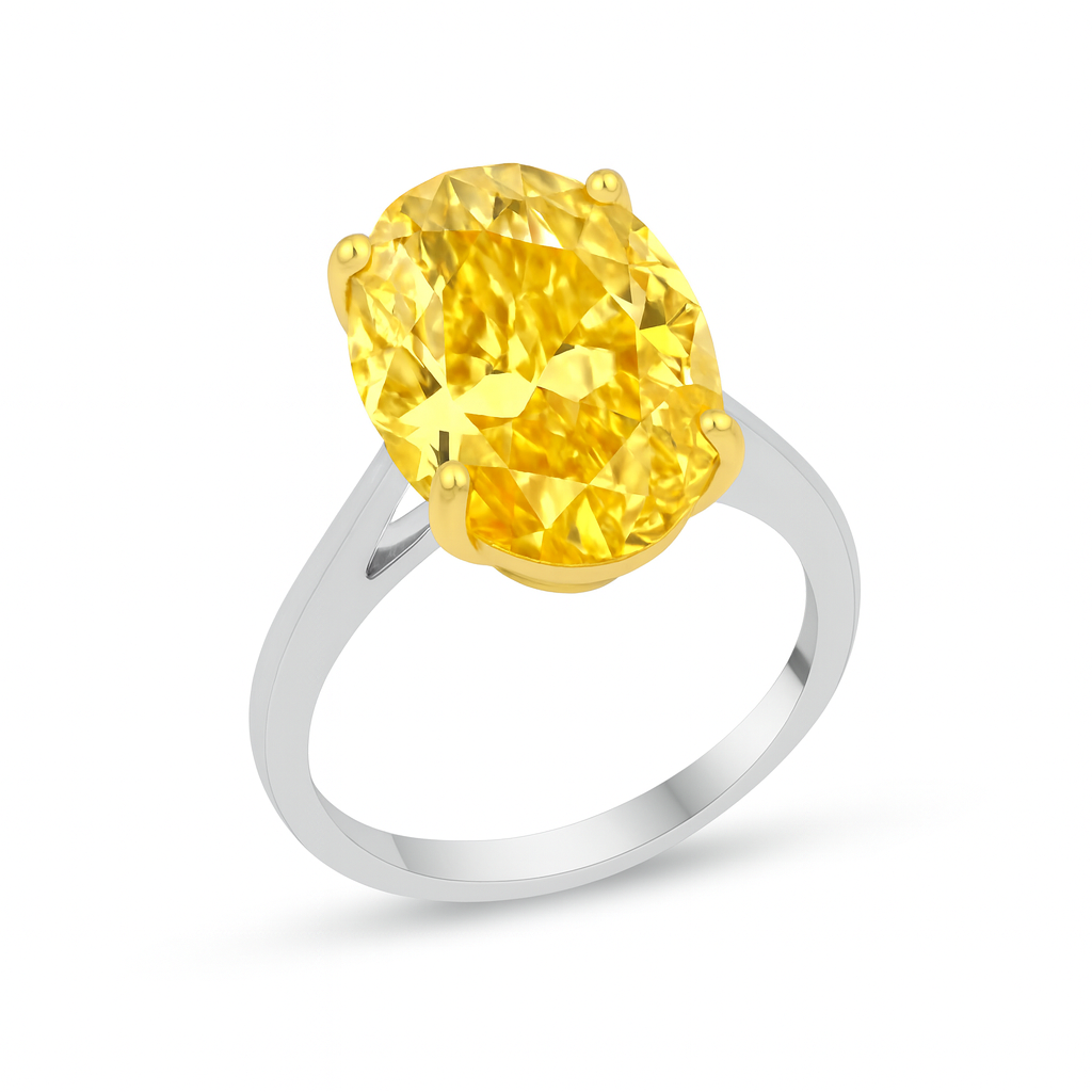Fancy Yellow Diamond Ring made with Oval Shape L SI2 8.12 carat Diamond set in 18k Gold 3.43