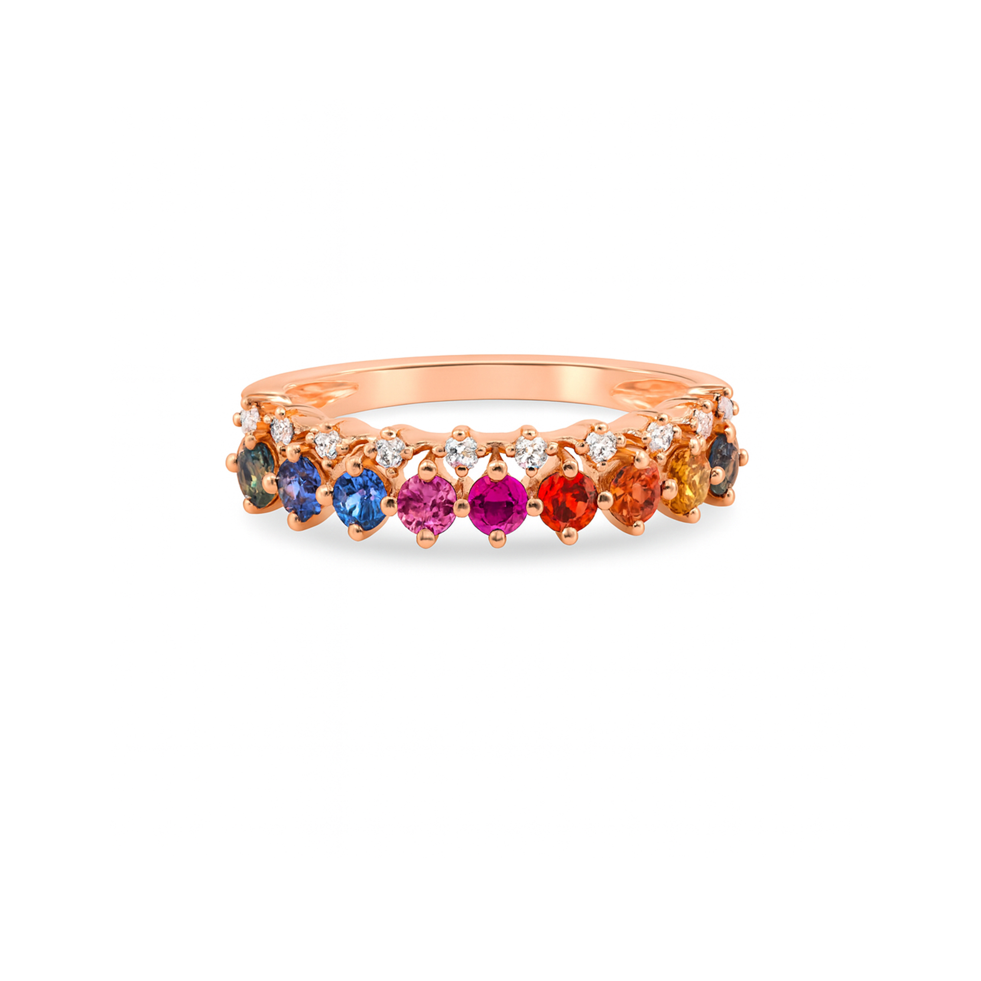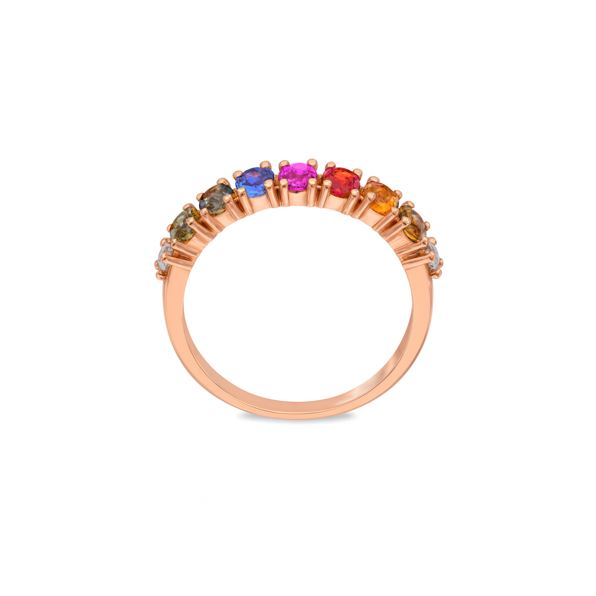 Turn every gesture into a celebration with our Sapphire Ring, a vibrant masterpiece crafted for those who love to stand out. Featuring a dazzling spectrum of sapphires, ranging from fiery orange to ocean blue and soft pink.