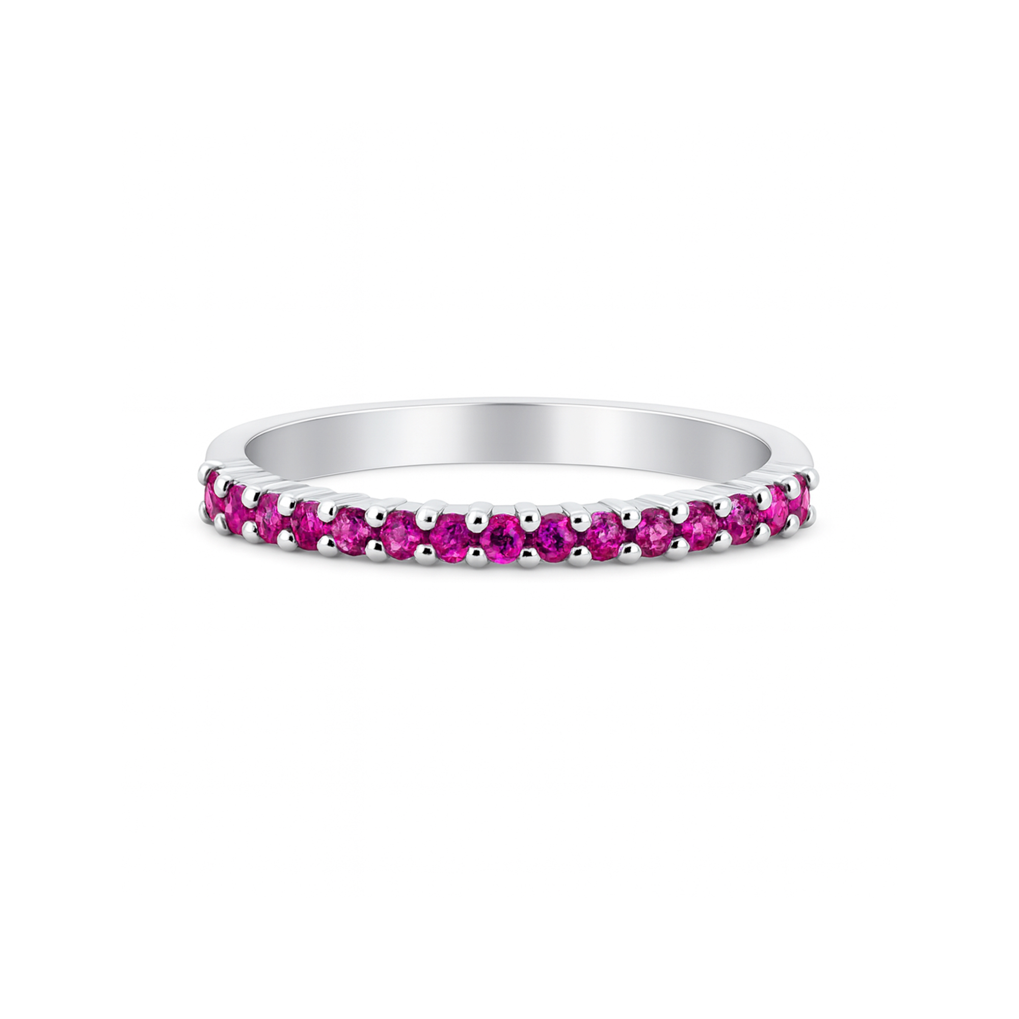 Celebrate life’s precious moments with the exquisite Pink Sapphire Half Eternity Ring. Adorned with a row of vibrant pink sapphires, this ring radiates warmth, passion, and timeless beauty.