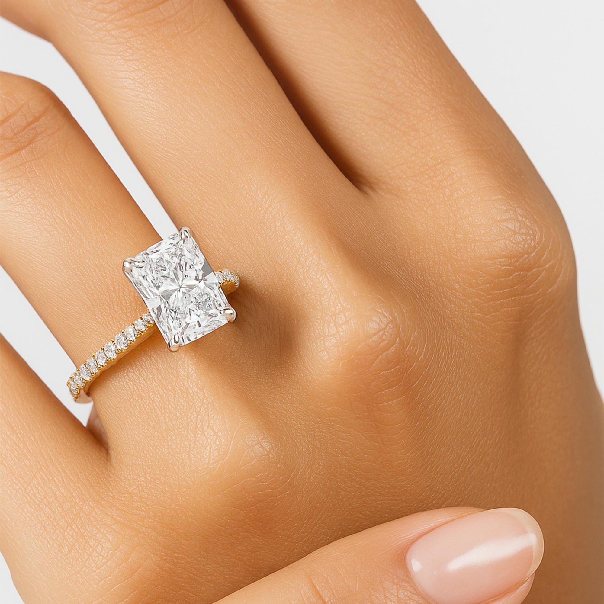 Experience unmatched brilliance with a Radiant diamond ring with Shoulder diamonds, crafted for timeless elegance and love.