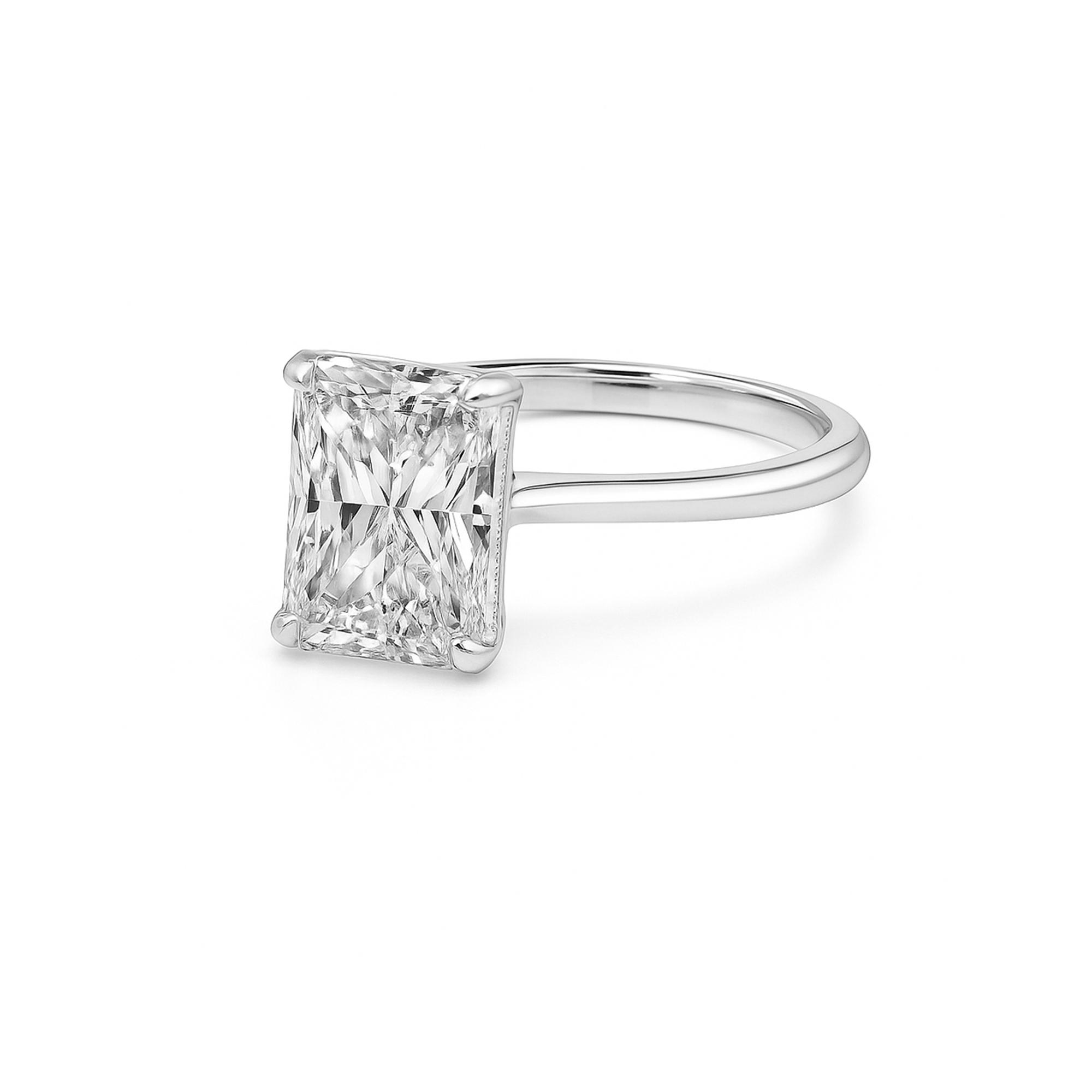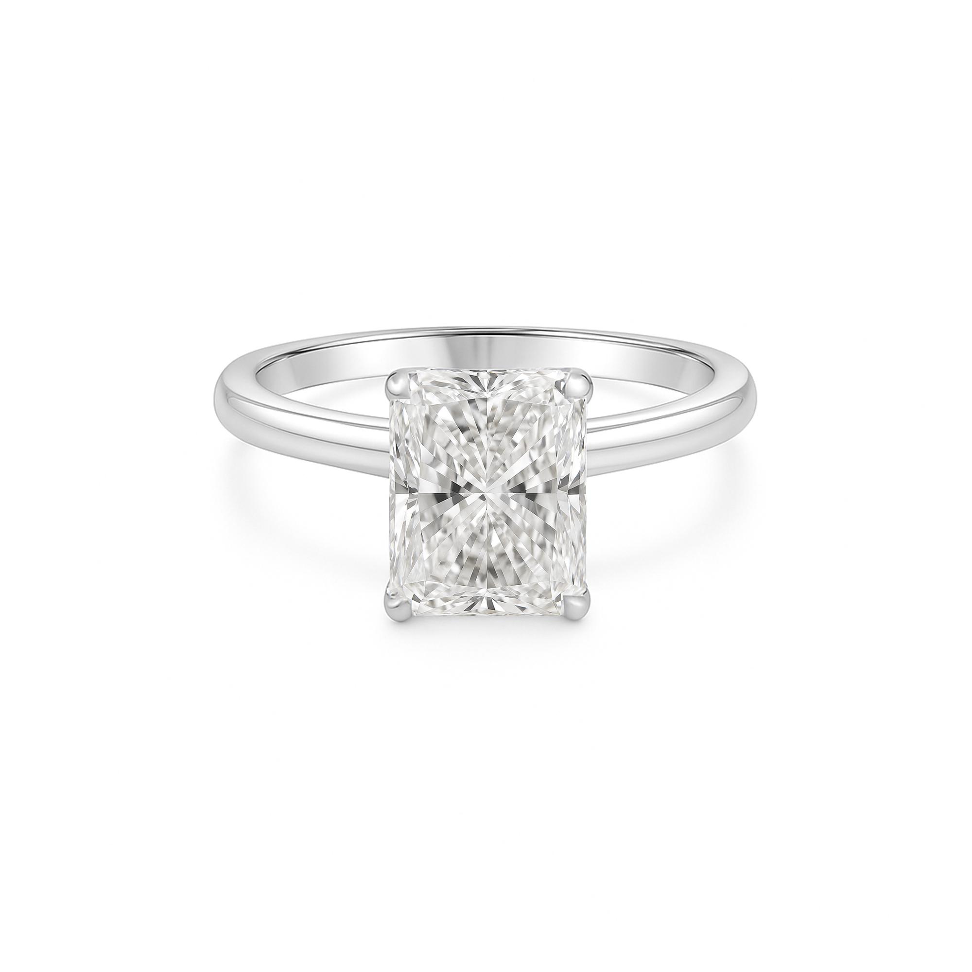 This Solitaire Ring captures attention with its bold sparkle and clean elegance. Featuring a rectangular or square silhouette with cropped corners and 70 expertly cut facets, the radiant cut combines the brilliance of a round cut with the sleek edges of an emerald cut. Set in a minimalist solitaire design, this ring maximizes light return, delivering a fiery display with every movement. Its refined brilliance makes it an ideal choice for those who admire statement simplicity. Customized rings in Dubai